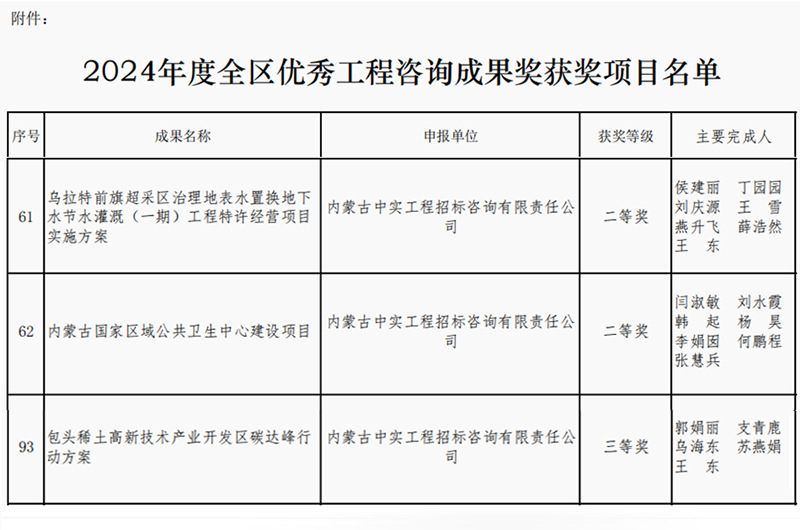 2025-04-168193 次2025年4月16日,内蒙古工程咨询协会公布了2024年度优秀咨询成果奖获奖单位名单,我司取得两个二等奖和一个三等奖,我司专业能力和服务质量再次获得行业的认可。此次获奖,不仅体…